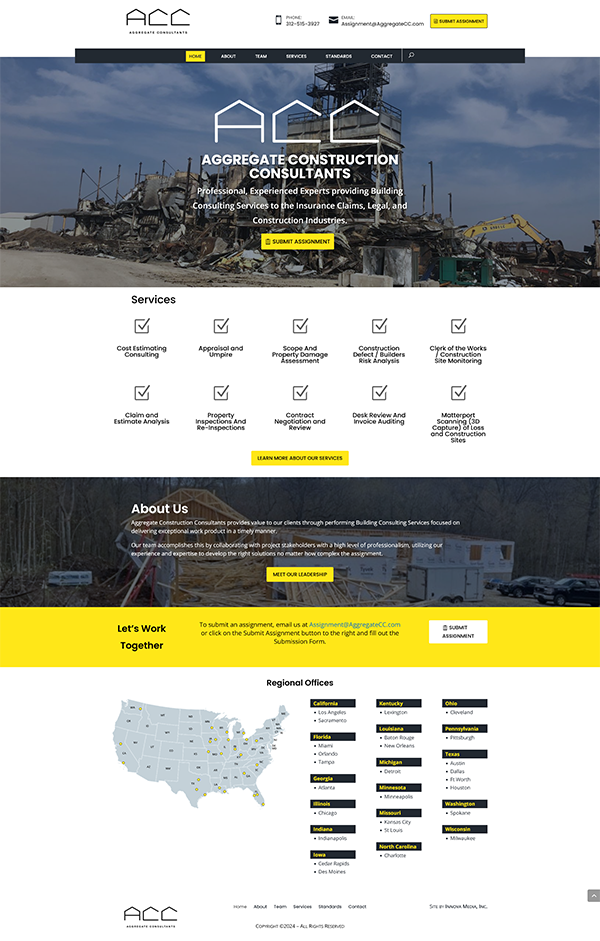 The primary goal for this project was to develop a new online presence for Aggregate Construction Consultants that would effectively generate new leads and establish their professional credibility with key audiences, particularly insurance adjusters. The new website needed a modern look and styling to replace their outdated site. A key functional requirement was to streamline the client workflow by allowing assignments to be submitted directly online.